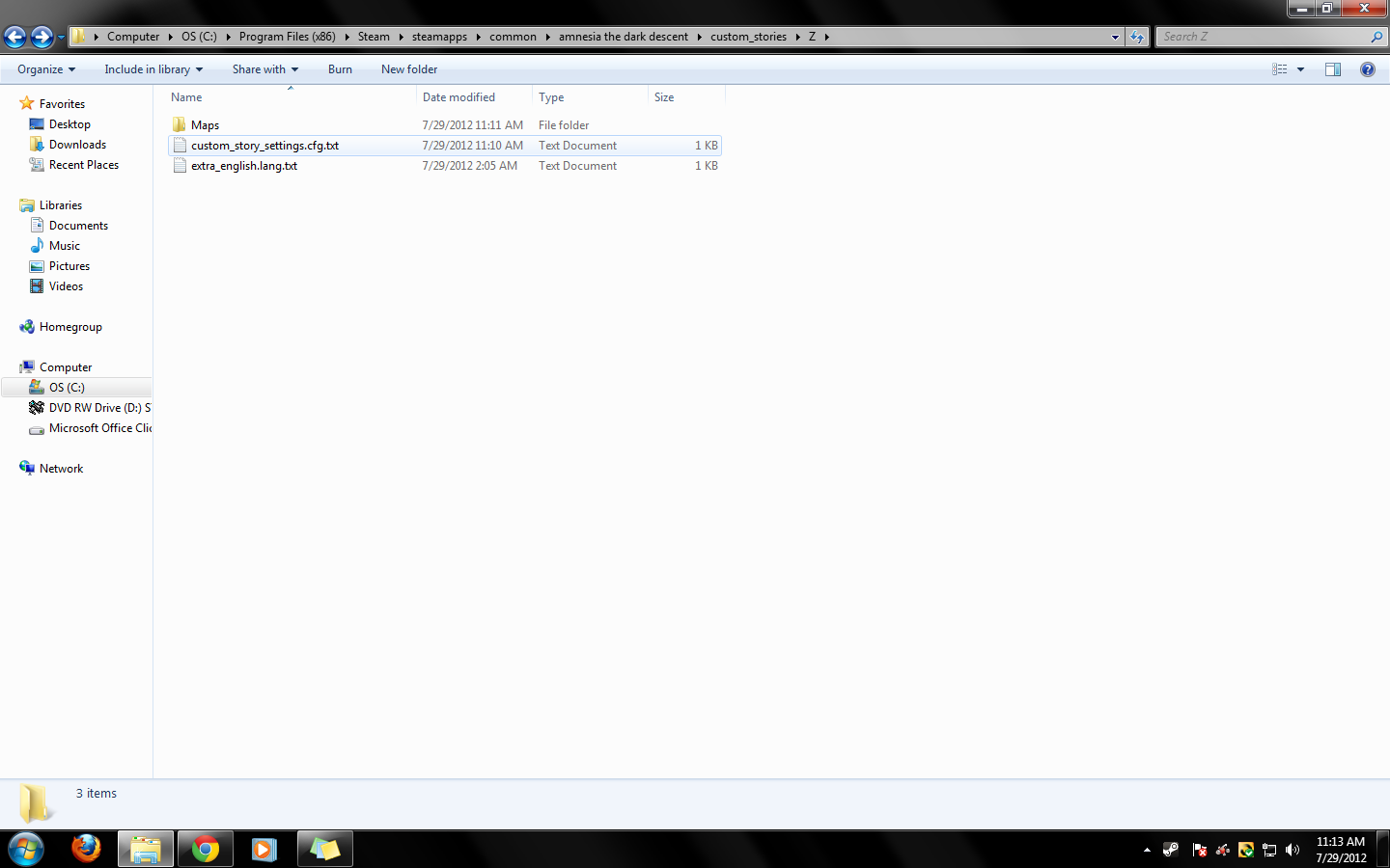 So, I'm getting started on the editor. I haven't created much of a map, but I felt like just trying it out to see how it looked. But for some reason, i can't play it on amnesia. I saved my map under the custom stories folder, and also tried creating a folder in the custom folder, which I then saved my map in. No matter what, i can't open it in the amnesia game itself. Angry I bought amnesia on steam, and I am using windows 7. What do I do? Do I save it as a different type of file? What do I do?