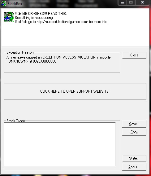 Integrated / laptop graphics chipsets troubleshooting guide: http://www.frictionalgames.com/forum/thread-9942.html im having a problem with my Amnesia game, its like this.. i start the launcher the game runs, and im there in the menu.. i noticed that my game aint runnin' smooth.. like there's a bit of lagging.. then when i close the game, a window shows up saying there's an error.. (download the picture) ive been searching for this problem but i cant find any solutions.. please help[/font]