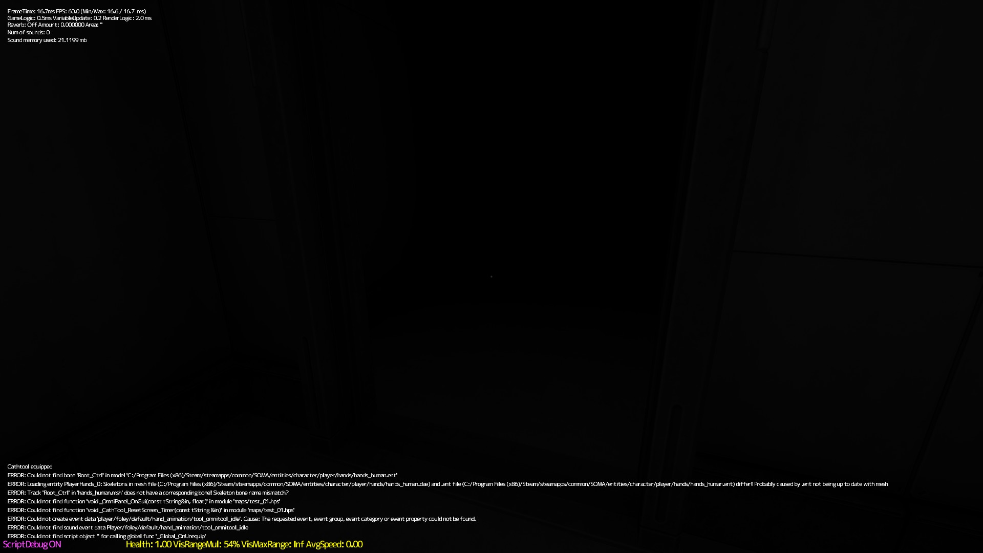 No problem. For sure, SOMA has been out for a little over a month, so there hasn't been a whole lot of time for people to get used to the whole bit of it. Add that to the fact that SOMA's scripting API is apparently that much harder than Amnesia's was, and you get a situation where even people with extensive experience in Amnesia's modding have little clue how to do anything.