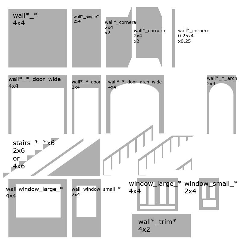 each wall set will consist of the following tiles