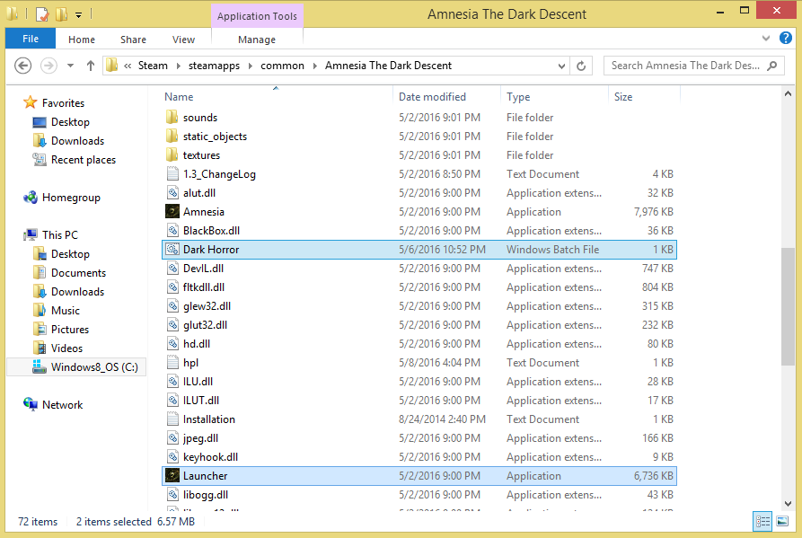 The .bat file and Launcher.exe are both in the main Amnesia folder. I also changed the name of the folder of Amnesia Dark Horror to ADH and also changed the path for the .bat file to reflect the changes to the folder. I have no idea why it's running from my System32 folder. Also, Spelos, the pushd command resulted in the same error.