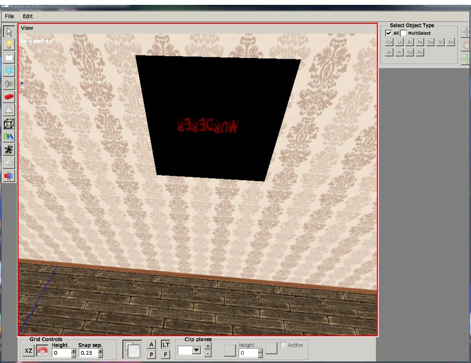 Next, open the material editor. As shown below, make sure the type is "decal", the blend mode is "alpha," and the "diffuse" box is checked (don't bother touching any of the other settings). Open the file you wish to use as your decal, and then save the .mat file somewhere in your amnesia directory (for my custom story I save the decals in the root directory under textures\decals)