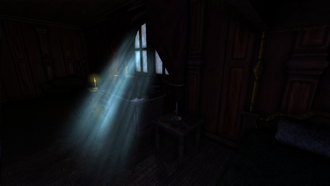 Its going to have a slightly cracked door at the end of the hall with light coming through. Your vision will be hazy, you will be slow and you'll be dazed. Upon nearing the center of the hall you hear something from behind. (I've read from a do's and don'ts post that early monster encounters are don't build suspense) We can still do it but, if it seems to fast then we could add voice there or something.