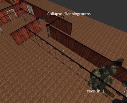 When you enter the Zone "Collapse_Sleepingrooms", the entity "cave_in_1" will become active, a sound of crushing stones will sound ("04_rock_break.snt") and smoke will come out of the hallway.