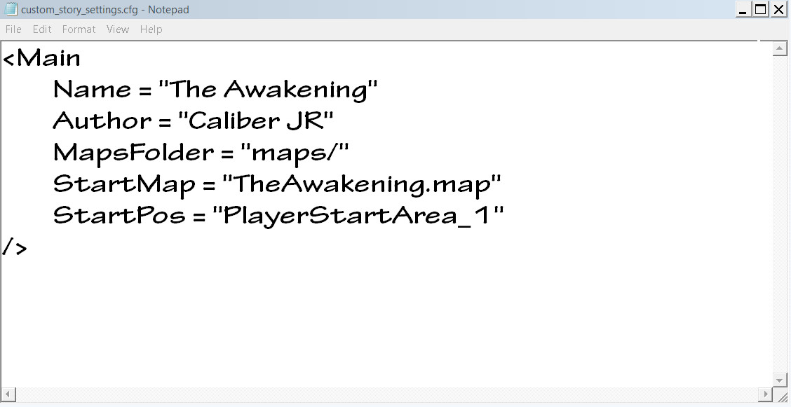 (04-08-2012, 12:02 PM)CaLiBeR JR Wrote: Huh Im so confused im making a Custom Story but i cant test it out Its dosent come up in my list Any help heres my Custom Story Folder Message If you want more Info about whats inside them Files + i got steam