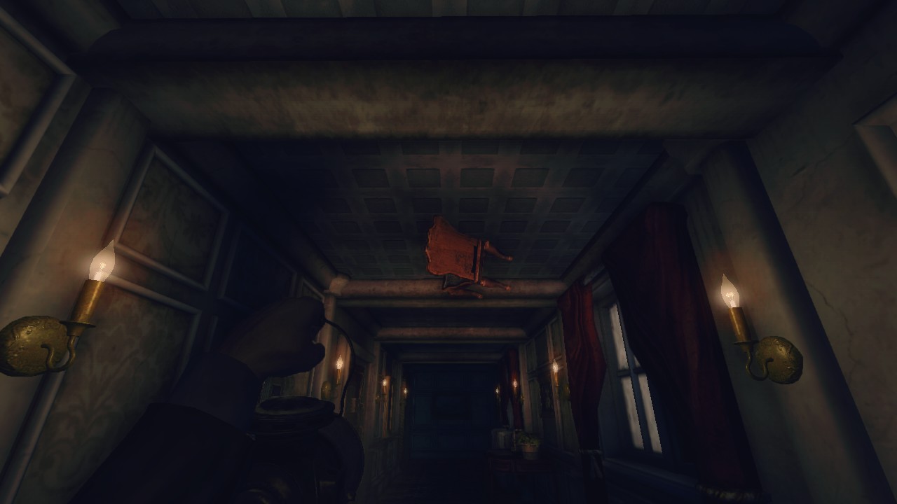A very minor bug. 99% of gamers won't witness this, but by throwing a chair at the ceiling at the beginning of the game, this happened.