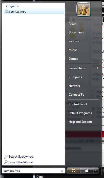 Click start > Type in the startsearch "services.msc" and then press enter.