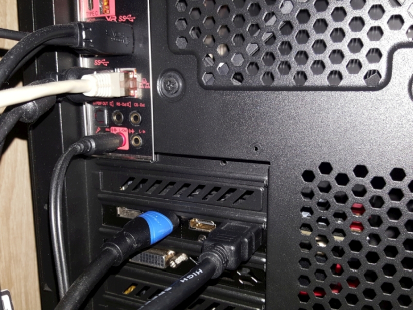 So, this is now the Desk-PC-Setting I talked about with the PC-Monitors (the main one, the blue one, is Displayport and the second pc monitor is HDMI) plugged in.