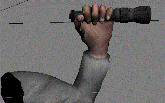 I have an animation that fits the flashlight into the hand, all the fingers are posed and open for the flashlight, just need to get it working, I have a scaling issue, when it opens in the model viewer, its huge and distorted