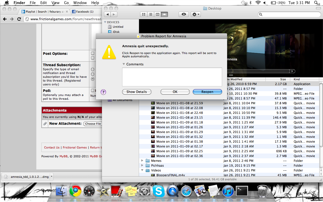 Solved: 9 Years, 11 Months ago RE: Amnesia "Quit Unexpectedly" Error