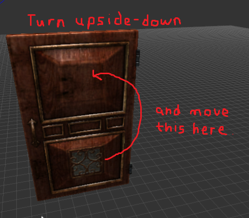 2) DOORS: Mansion doors force the door handle to be on one side. I need a couple doors to have the handle/hinges. This can be accomplished by flipping the door upside down but then the texture is upside down. Could some one make a model called mansiondoor2 that turns the current door upside down but turns the graphic back right side up?