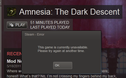 I try to launch Amnesia through Steam, and this pop-up appears.